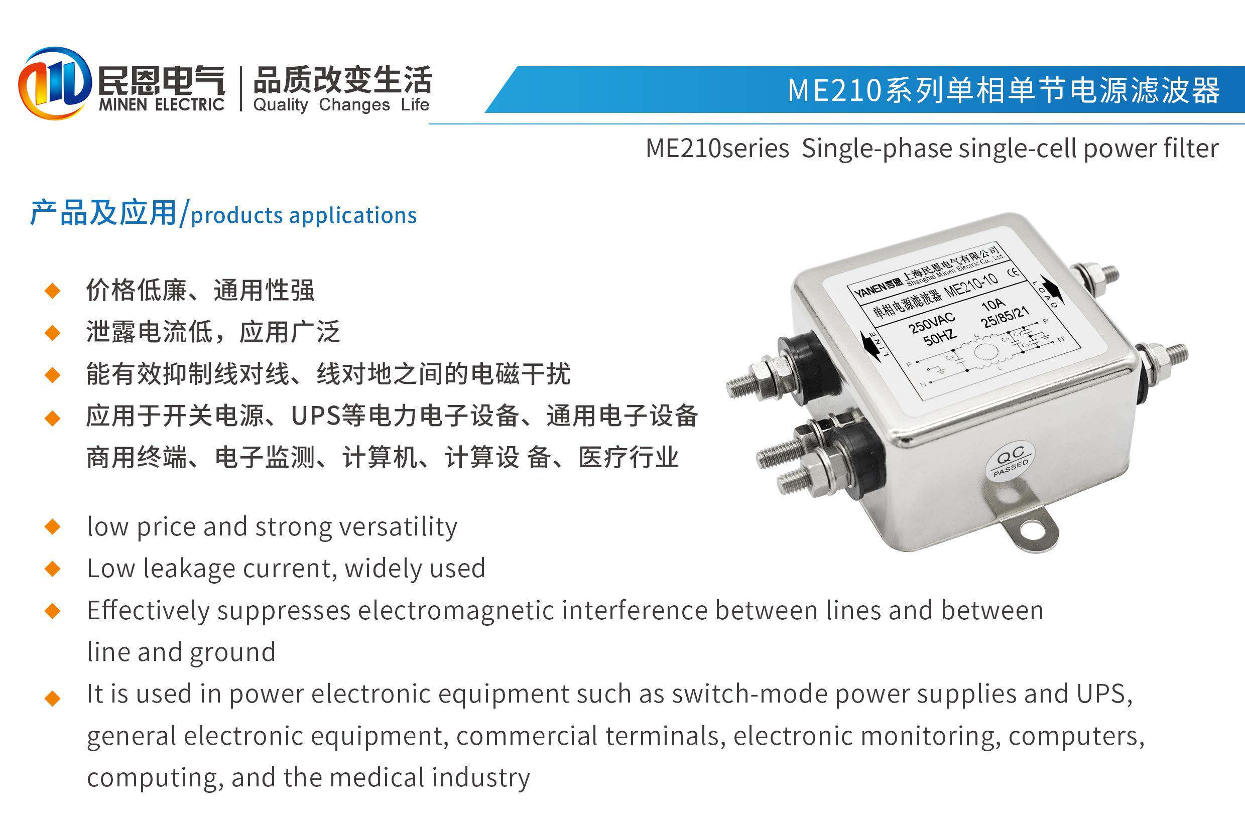 ME210系列單相單節(jié)電源濾波器