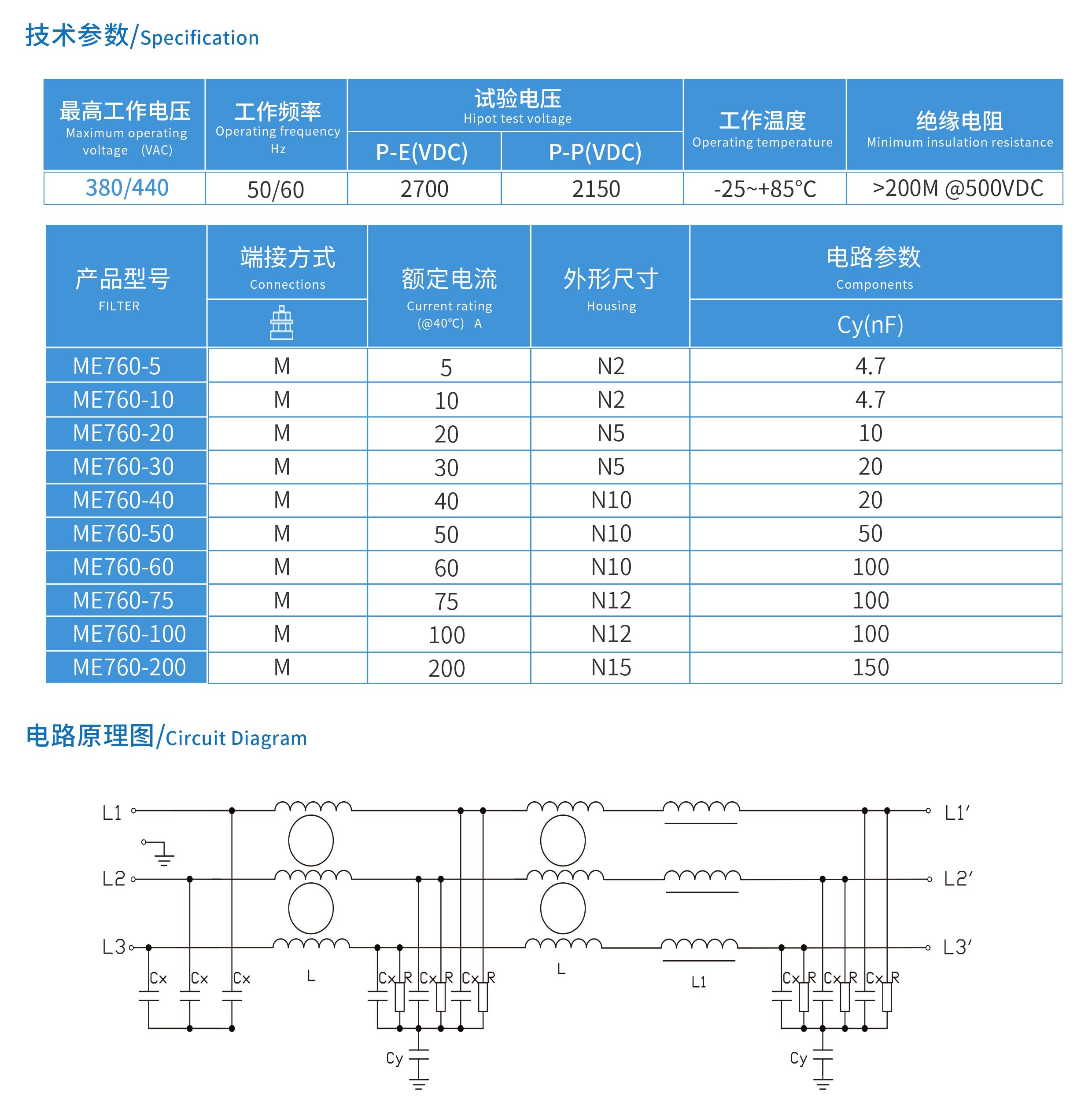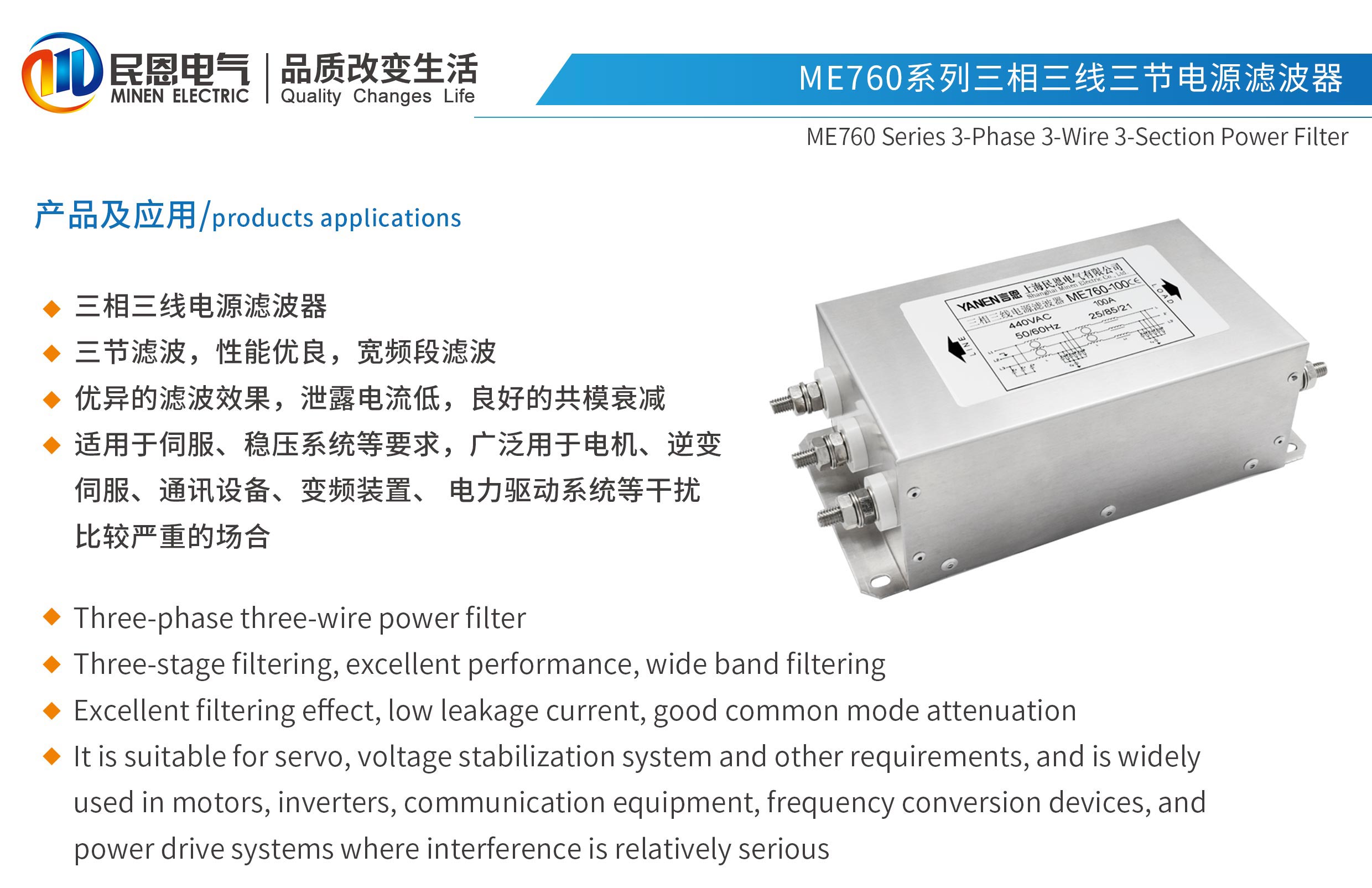 ME760系列三節三相三線電源濾波器