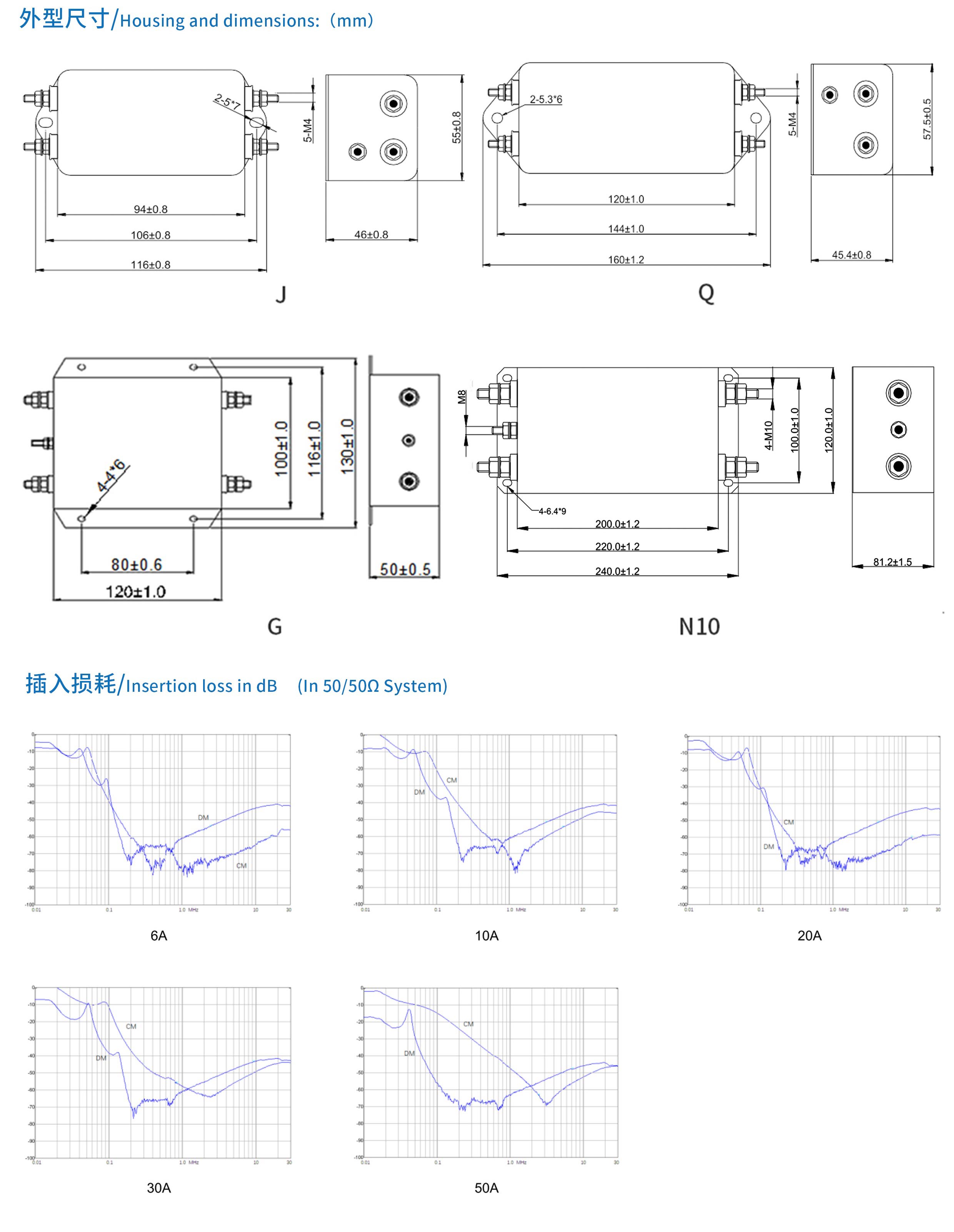 高性能型電源濾波器,在10KHz~30MHz寬范圍內具有較好的共模和差模 濾波效果 三節濾波 ,可解決絕大多數設備的EMC/EMI問題。