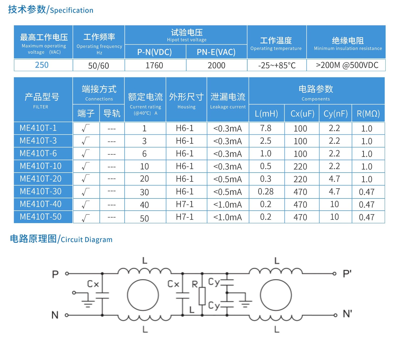 ME410T系列單相端子臺(tái)式電源濾波器